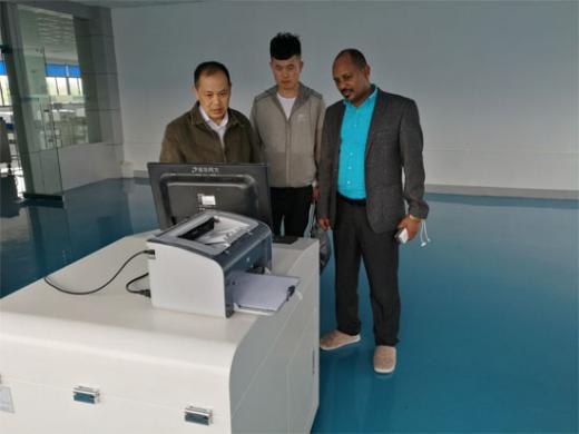 在2016年4月26日Mr.Mark Mihiretu在我公司銷售部晉經理和技術工程師水工的陪同下對我公司展開了考察。我公司的生產車間、生產公司和整潔的生產現場給客戶留下了很好的印象。Mr.Mark Mihiretu帶來了一些標樣,技術工程師水工為客戶現場進行準確性和重復性試驗。Mr.Mark Mihiretu很滿意檢測的結果,并對儀器操作有了更多的了解。立即與我們簽下了合約。