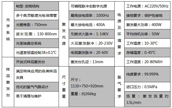 插拔式透鏡設計,快門設計,靜態氬設計,開放式火花臺設計。