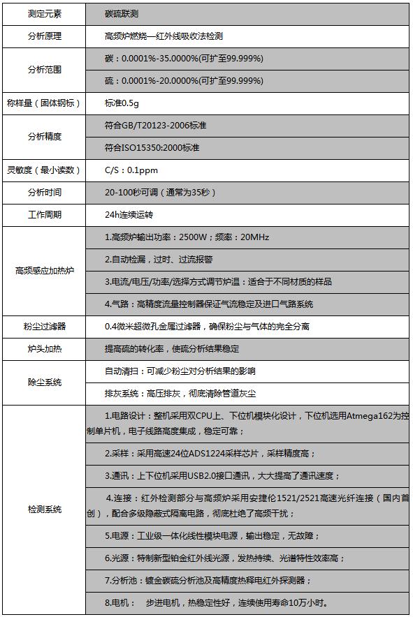 鍍金碳硫分析池及高精度熱釋電紅外探測器。