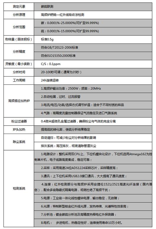 鍍金碳硫分析池及高精度熱釋電紅外探測器。